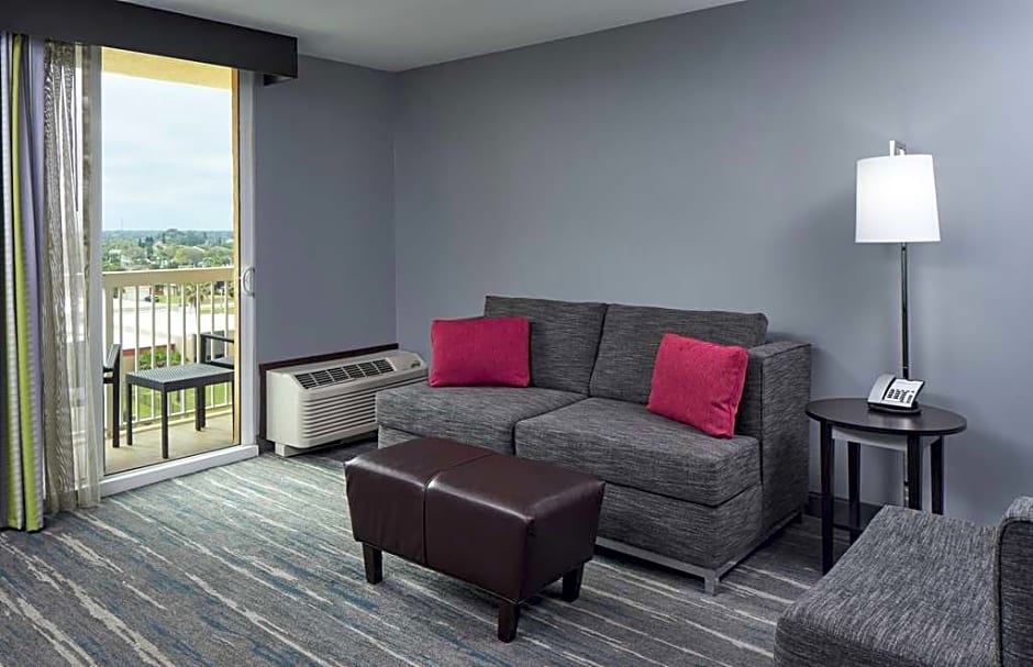 City view, balcony, 38-inch LCD HDTV, work desk, coffeemaker, microwave, free WiFi access, refrigerator Enjoy stunning views of the city and the Intercoastal Water Way from the private balcony of this room which also features two clean and fresh Hampton beds®. Relax in the soft seating area and watch your favorite TV shows on the 38-inch LCD TV with HD channels. This room boasts a large work desk and free WiFi access to let you stay connected while on the road. The granite bathroom contains soft towels and a shower with a curved shower rod for added space and light. Additional amenities include a refrigerator and coffeemaker.